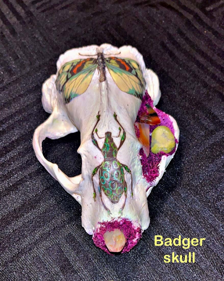 Badger Skull with butterfly